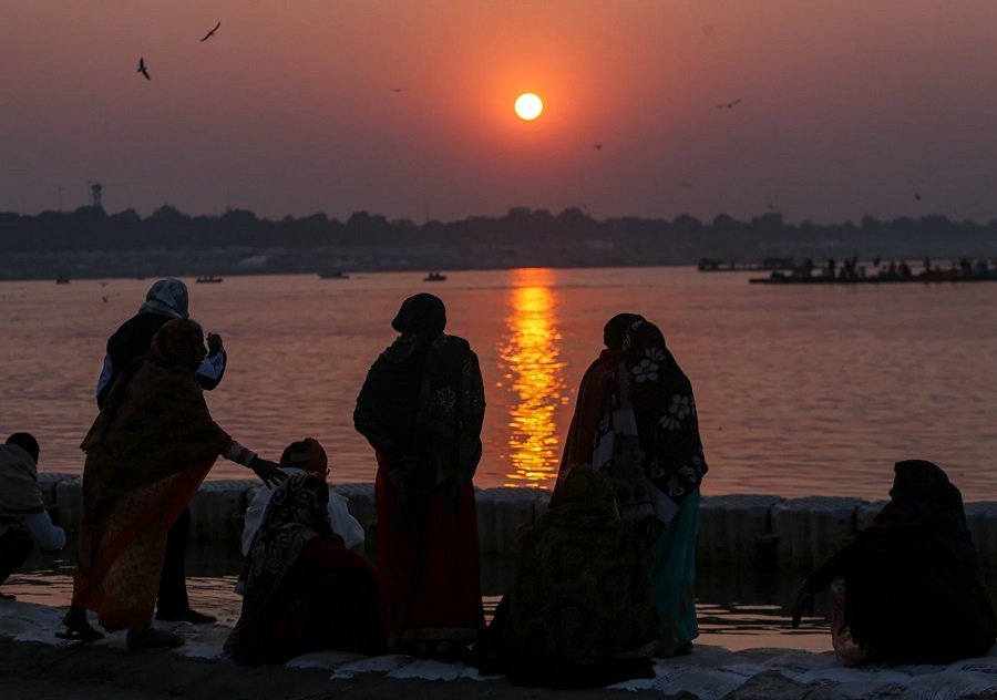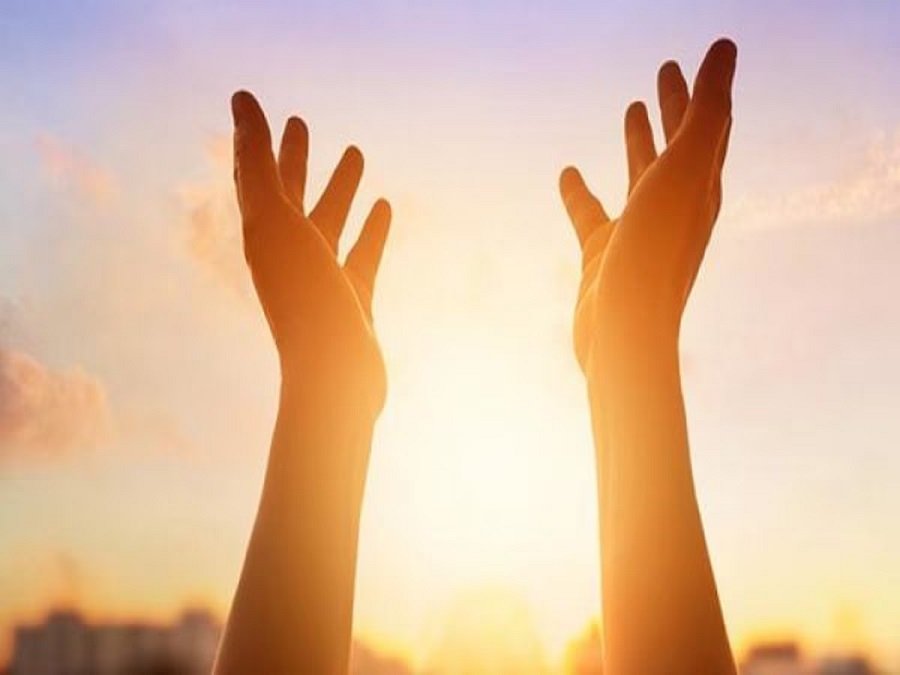 सूर्य की ओर मुंह करके खड़े हों और धीरे-धीरे पानी डालें, जिससे सूरज की रोशनी बहती धारा से गुज़र सके।