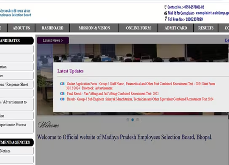 आधिकारिक वेबसाइट esb.mp.gov.in पर जाएं।