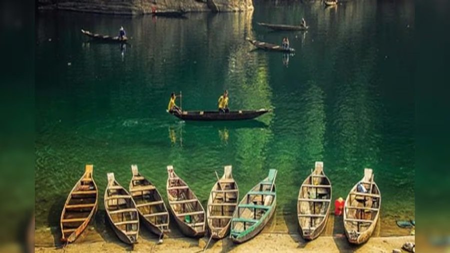 डॉकी (उमंगोट) नदी अपने कांच जैसे, क्रिस्टल-क्लियर पानी के लिए मशहूर है जहाँ नावें हवा में तैरती हुई लगती हैं। यह मेघालय के सबसे यादगार अट्रैक्शन में से एक है।